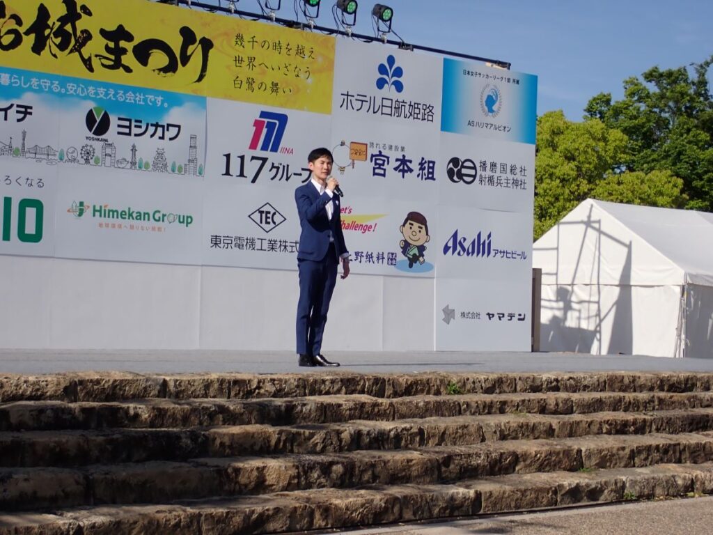伝統的な神楽の前にご挨拶に現れたのが、石丸市長!!