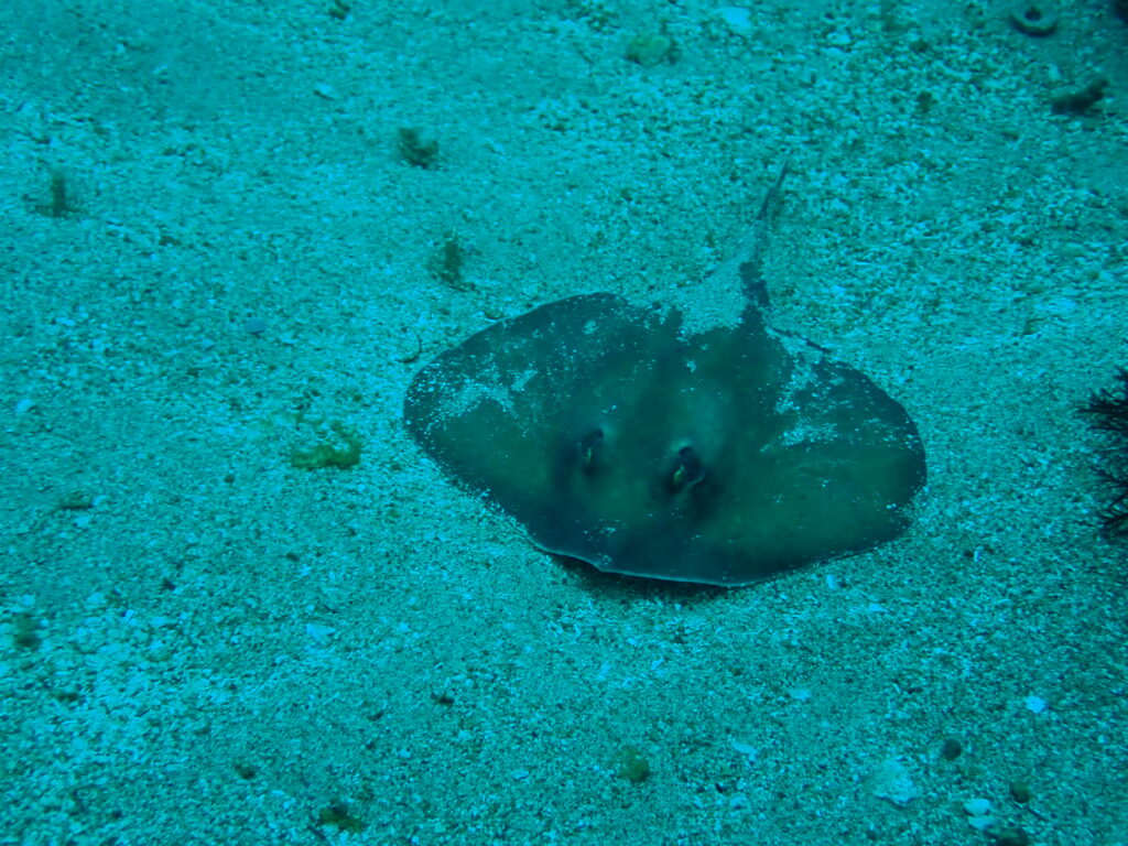 ナイフ岩横の砂地に「アカエイ」