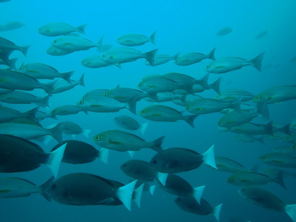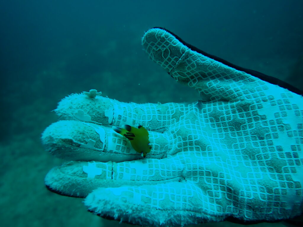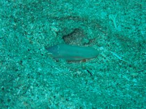 「ヒレナガカンパチ」もよく見られる~と言われ探しましたが出会えず・・・その代わりエキジット前にうっすら大きい魚が海底で見えました。(あの魚の正体は・・・・・)
