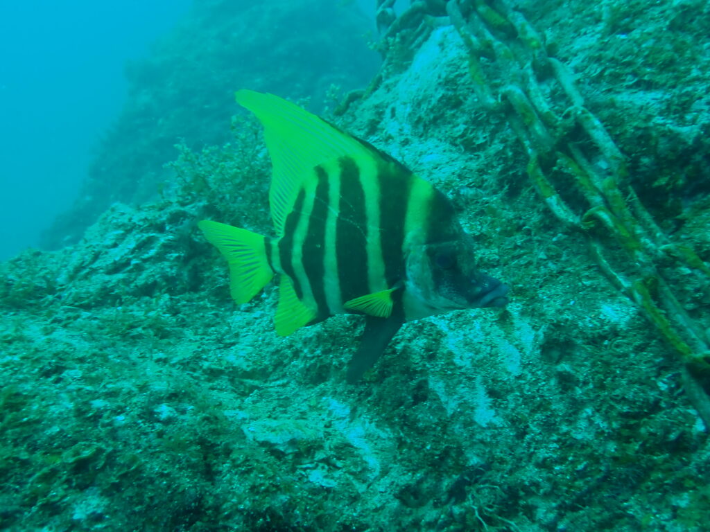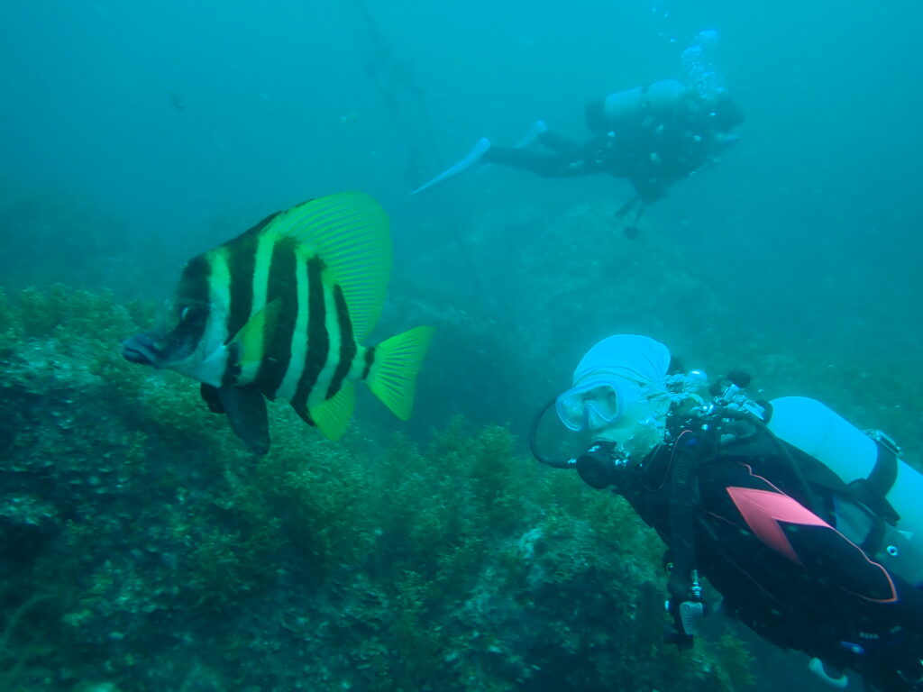 透明度がイマイチでもきれいに撮れるのが「カゴカキダイ」おまけにゆっくり泳いでくれるので撮影がしやすい!!(感謝です)