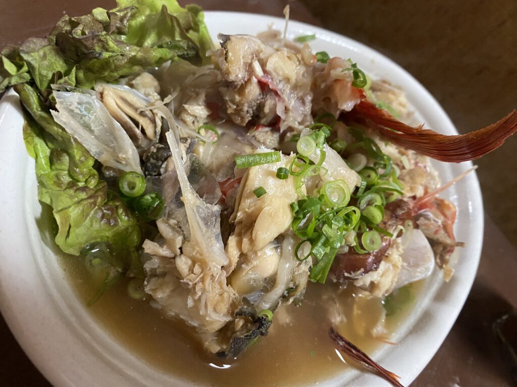 器材を洗って、最後の晩餐に向かいます。