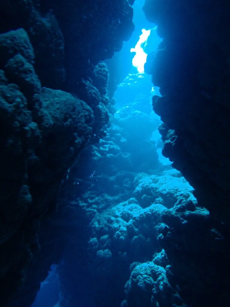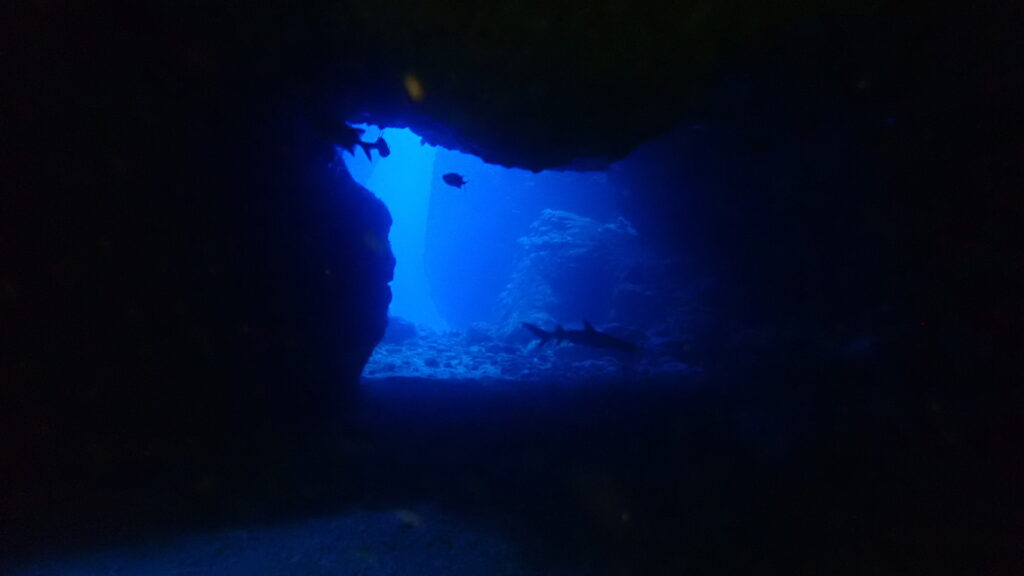 曇り空とは思えないほど、きれいな洞窟ショット透明度25m 癒しポイントです